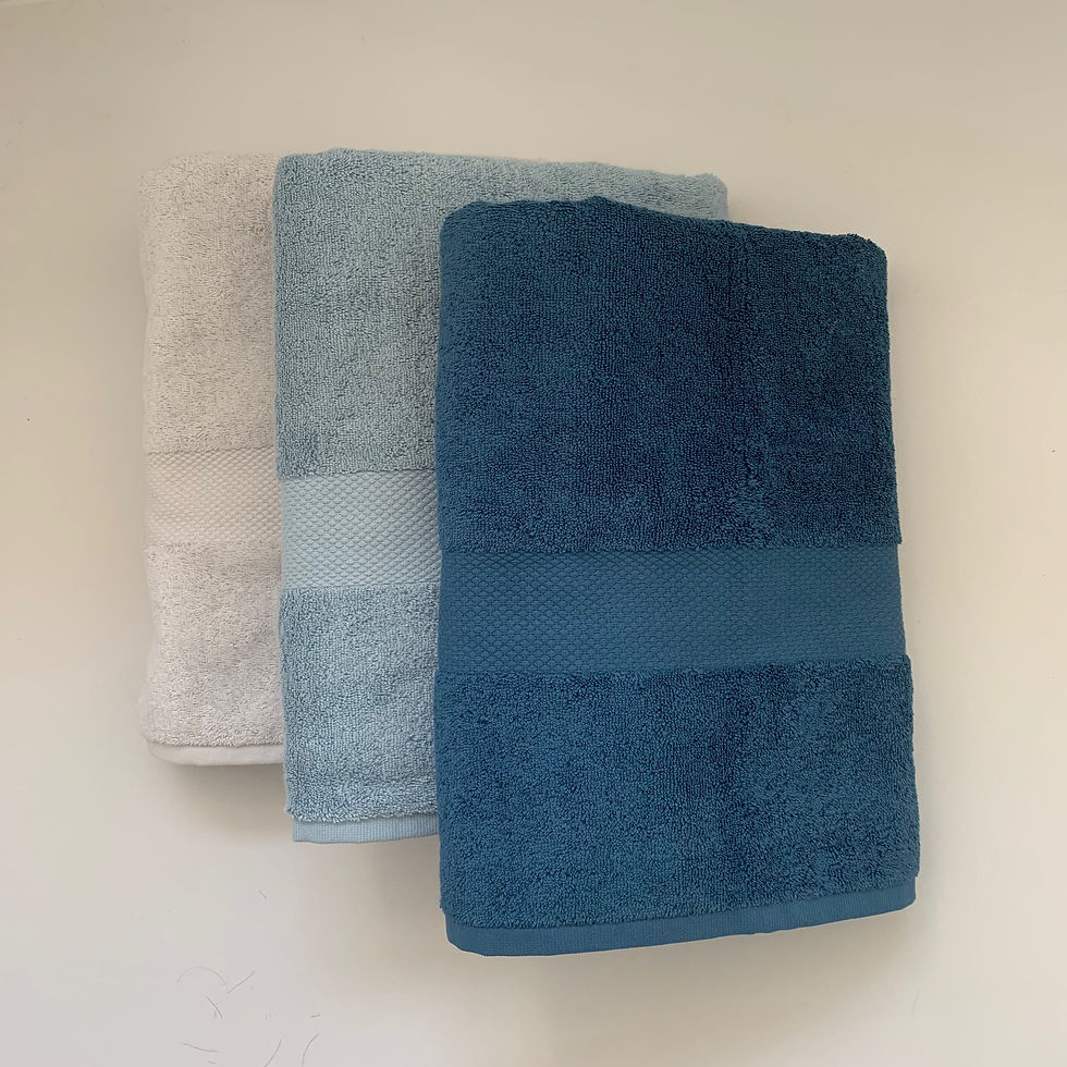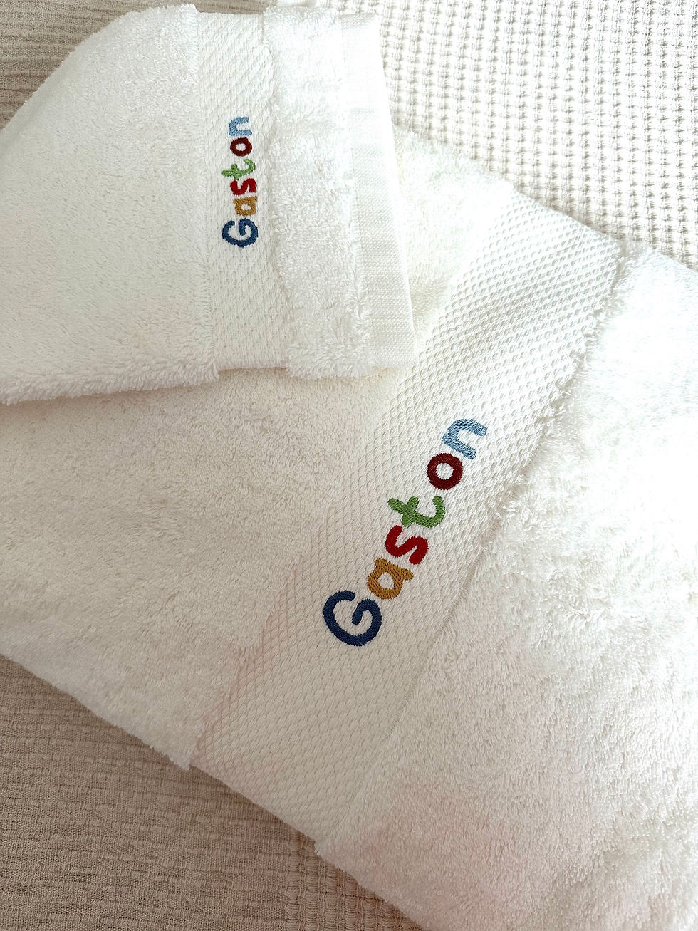 Serviette de bain personnalisée brodée (Marine, Ciel, Grise)
